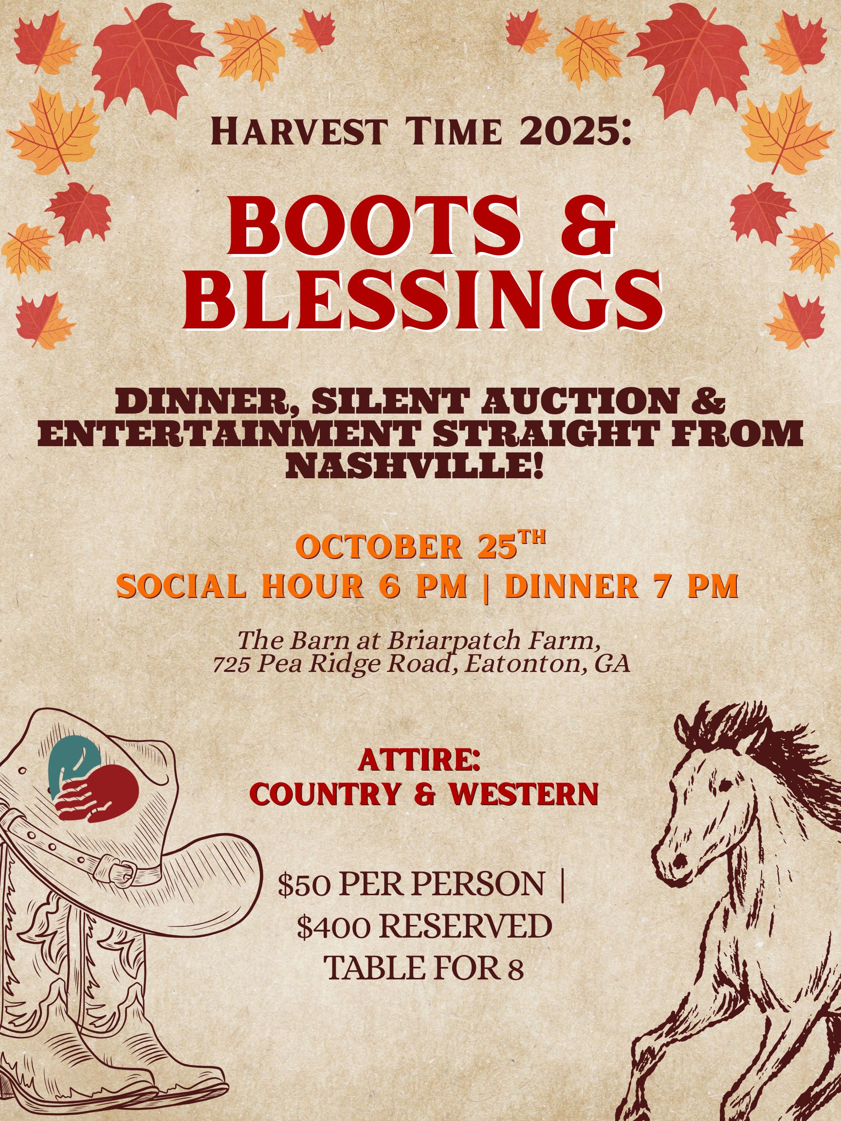 A country barn gathering with BBQ, live music, a silent auction, and more, all supporting families in need.