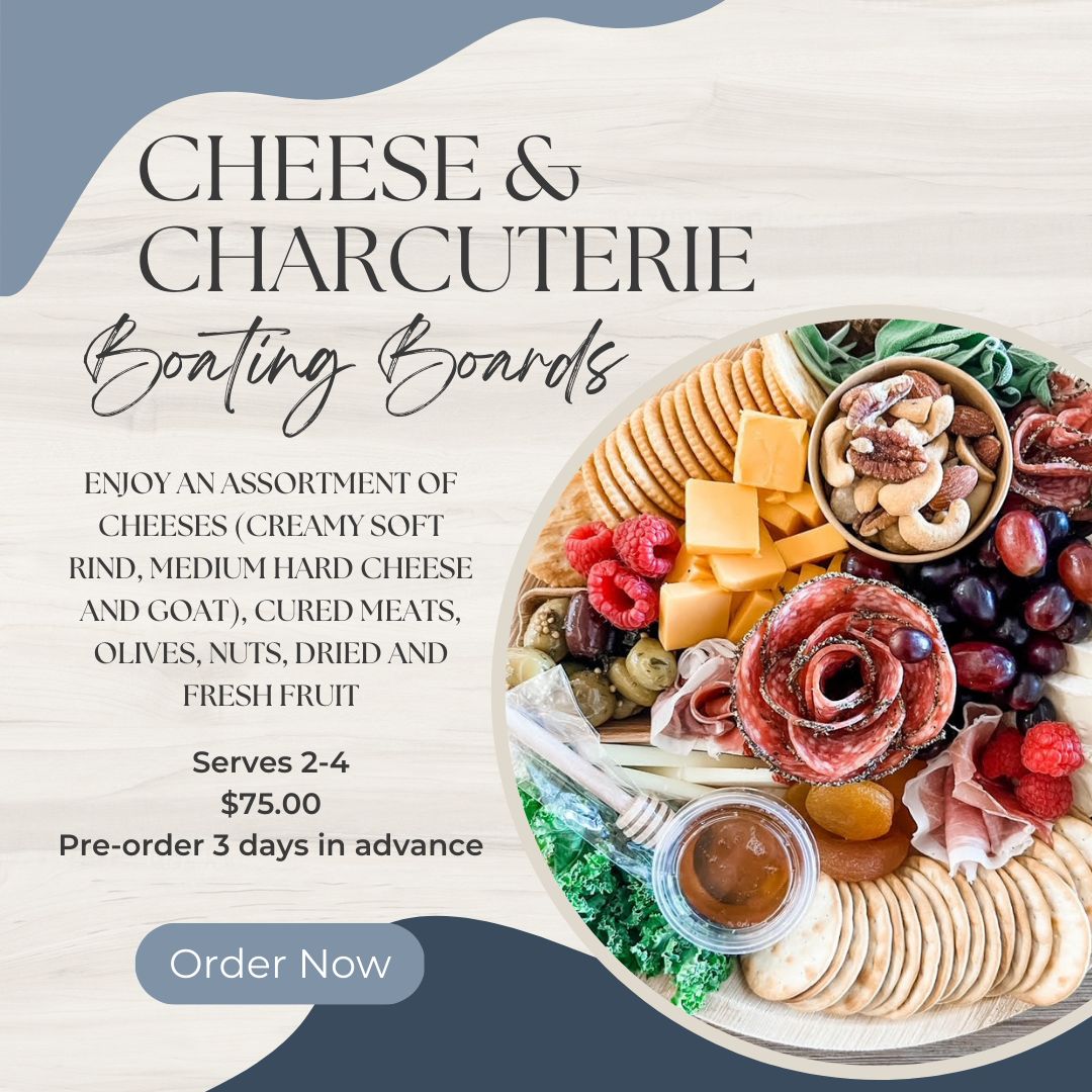 What makes a day out on the lake even better? A cheese and charcuterie board from Chef Deborah! Order yours via email and pick up by boat!