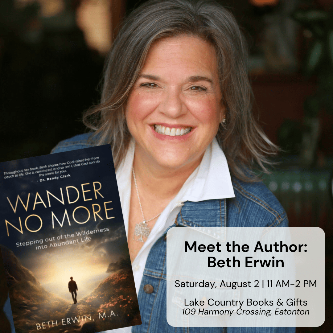 On Saturday, August 2 from 11:00 AM – 2:00 PM, Lake Country Books & Gifts will host a special book signing event with local author Beth Erwin to celebrate the release of her latest novel, Wander No More.