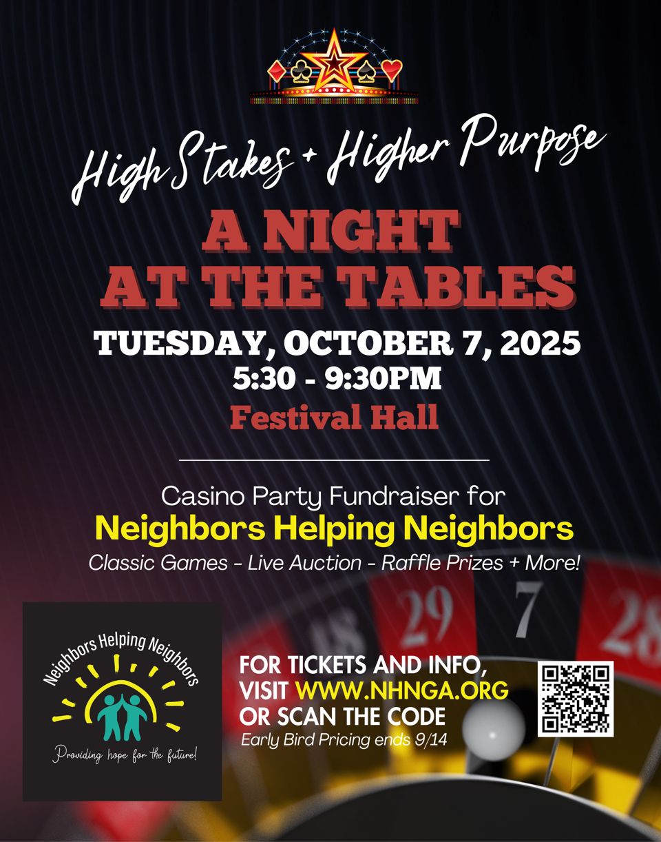 Get ready for a high-energy night of fun and philanthropy! Join friends, neighbors, and local leaders for an unforgettable evening of casino-style games, professional tables, and a festive atmosphere, all benefiting NHN’s mission to support families right here at home.